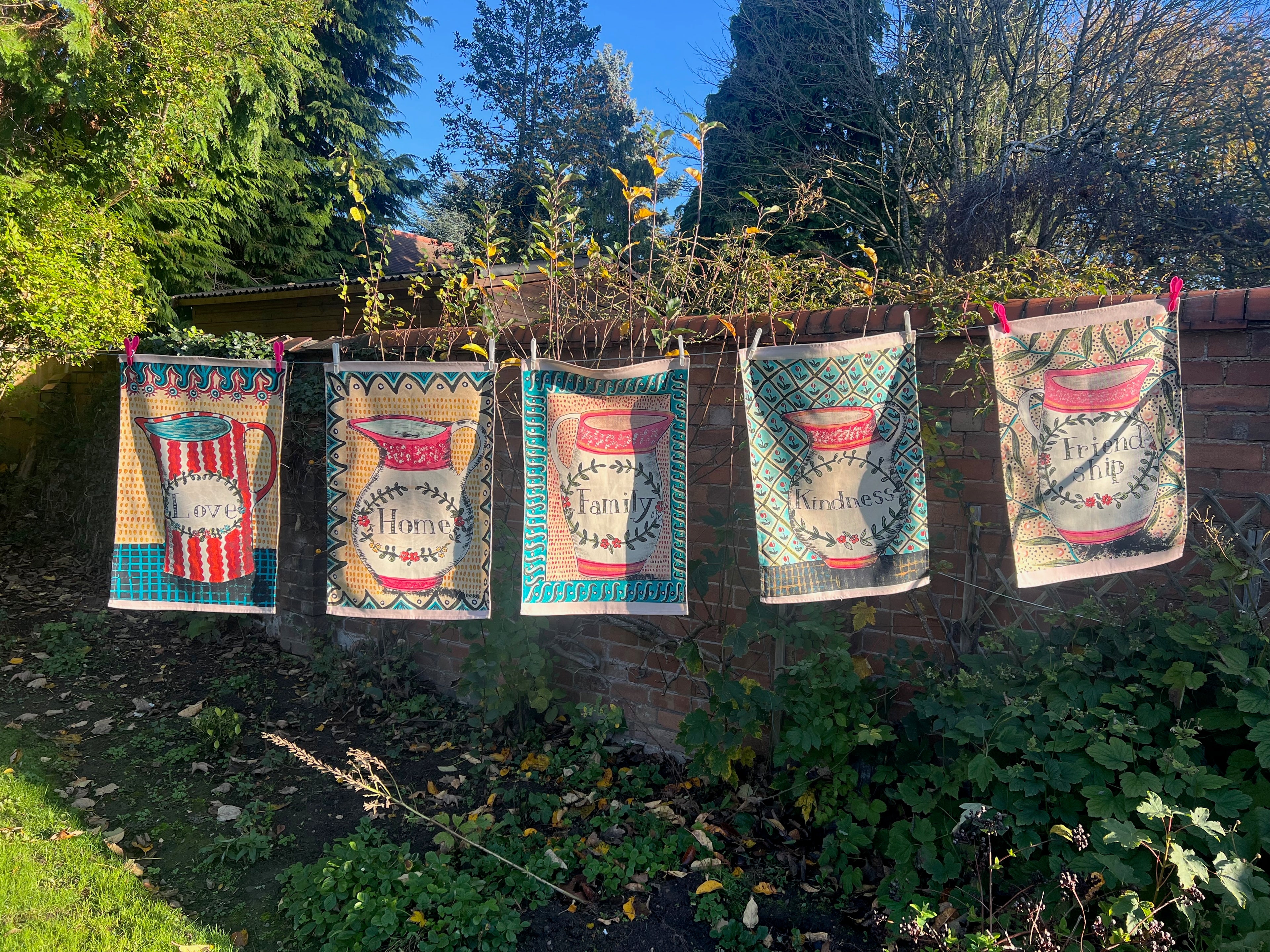 Explore hand-illustrated tea towels inspired by Staffordshire pottery and British folk art....